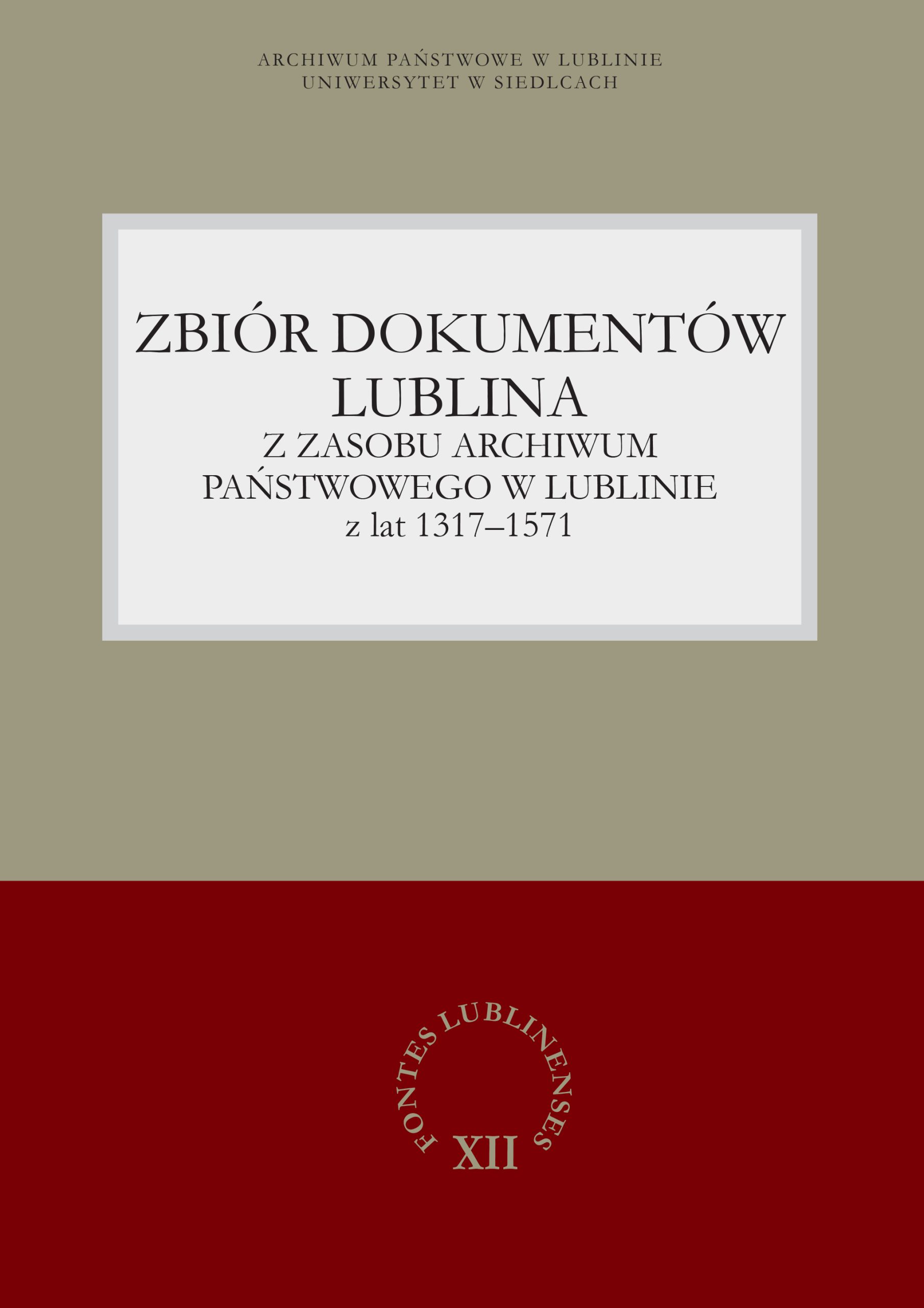 Od dzisiaj dostępna jest w sprzedaży publikacja z serii „Fontes Lublinenses” pt. Zbiór dokumentów Lublina z zasobu Archiwum Państwowego w Lublinie z lat 1317-1571, w opracowaniu M. Pytla, M. Tomaszka przy współudziale E. Zielińskiej. Jest to tom 12 niniejszej serii wydawniczej. Powstała przy współudziale Uniwersytetu w Siedlcach. Jest to pierwsza pełna edycja zachowanych w zbiorach Archiwum Państwowego w Lublinie pergaminowych i papierowych dokumentów wystawionych do końca epoki Jagiellonów dla miasta Lublina, jego rzemieślniczych cechów i instytucji w nim funkcjonujących. Wystawcami większości tych dyplomów byli polscy królowie. Zbiór obejmuje 127 dokumentów, których stan zachowania pozwala na rekonstrukcję ich brzmienia w całości lub przynajmniej w znacznej części. Publikacja zawiera oryginalne teksty łacińskie (w jednym przypadku – odpis staropolski) wraz z tłumaczeniami. Wstęp wprowadza w tematykę historii miasta i głównych wątków jego życia społecznego oraz gospodarczego w stuleciach XIV-XVI odzwierciedlonych w treści dokumentów. Informuje również o metodach edycji. Indeksy: osobowy i geograficzny służą identyfikacji osób – bezpośrednio związanych z Lublinem oraz należących do ówczesnej elity Królestwa, jak też miejsc zarówno w samym mieście, jak i jego okolicy. Trzeci indeks zawiera wplatane w łacińskie teksty dokumentów słowa z ówczesnego języka polskiego lub niemieckiego i może stanowić pomoc z perspektywy badań nad historią języka.